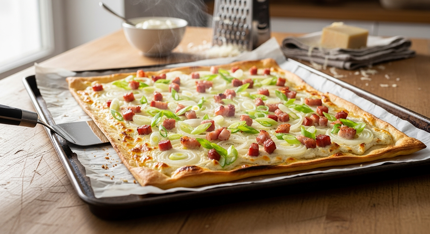 Ein gemütlicher Abend ohne ein köstliches Stück Flammkuchen? Für viele kaum vorstellbar. Wer jedoch auf Kohlenhydrate verzichten möchte oder eine Diät verfolgt, sucht oft nach passenden Alternativen zum klassischen Weizenmehlboden. Genau hier kommt unser Low Carb Flammkuchen ins Spiel. Er kombiniert den traditionell herzhaften Geschmack mit einer modernen, leichten Ernährungsweise. Statt schwerem Teig nutzen wir eine clevere Mischung aus Quark, Eiern und geriebenem Käse, die im Ofen wunderbar goldbraun und stabil backt. Das Beste daran ist, dass dieser Flammkuchenteig unglaublich schnell zusammengerührt ist und ohne Ruhezeit direkt gebacken werden kann. So sparst du nicht nur reichlich Kalorien und Kohlenhydrate, sondern auch kostbare Zeit in der Küche. Freue dich auf puren Genuss ohne schlechtes Gewissen!