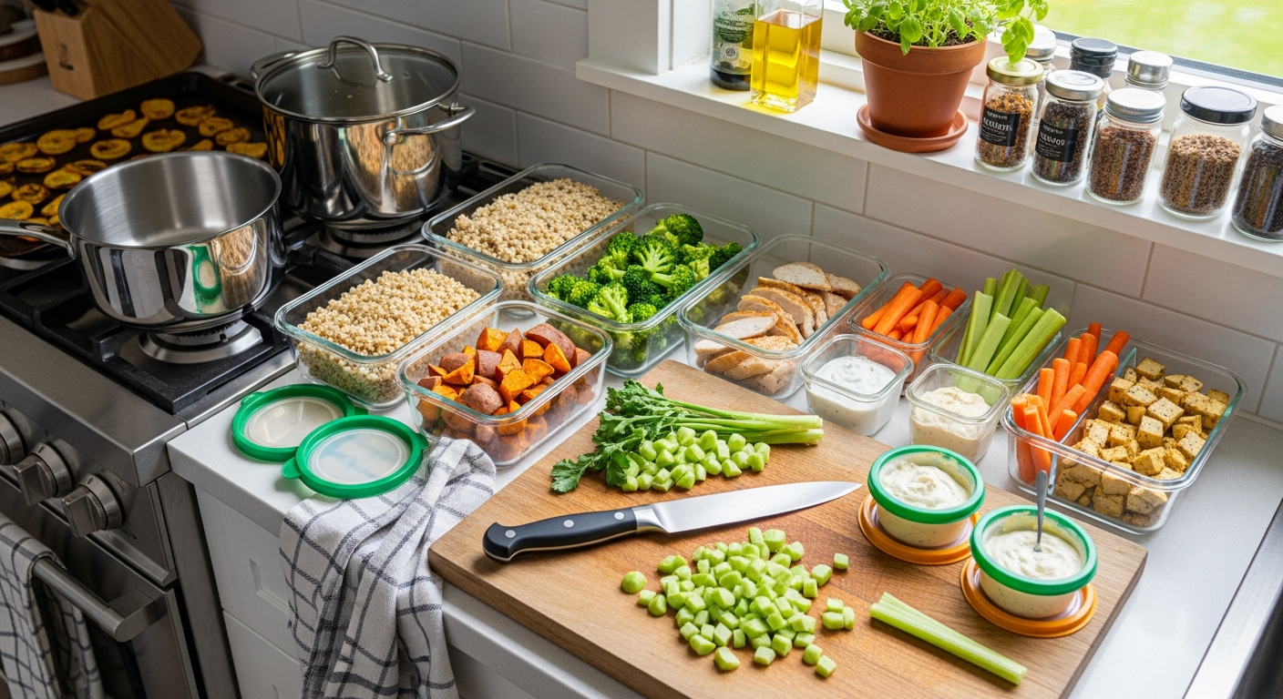 Meal Prep ist hervorragend für eine vegetarische Ernährung geeignet und bietet unzählige köstliche Möglichkeiten. Proteinquellen wie Tofu, Tempeh, Linsen und Kichererbsen lassen sich wunderbar vorkochen und bleiben lange frisch.